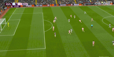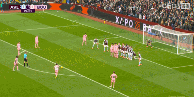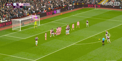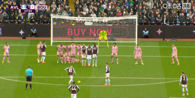 第28分鐘,正反手教學(xué),布恩迪亞位置相近的任意球直接破門,維拉1-0